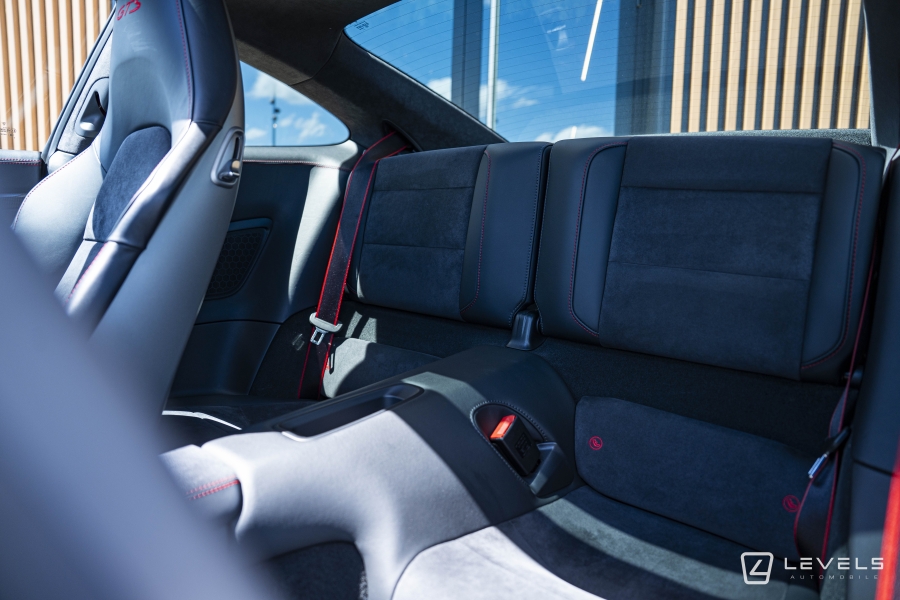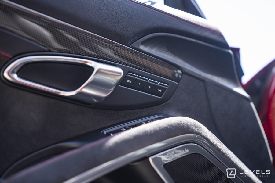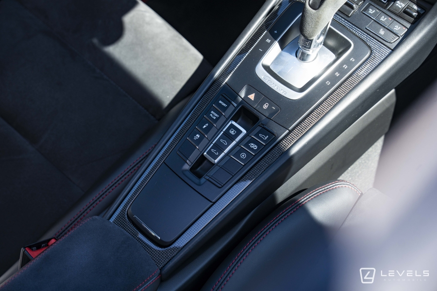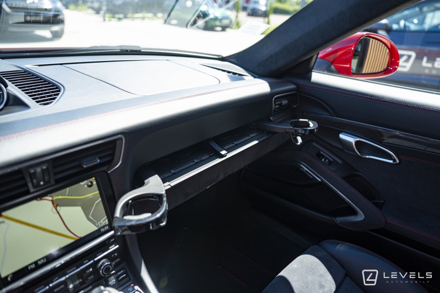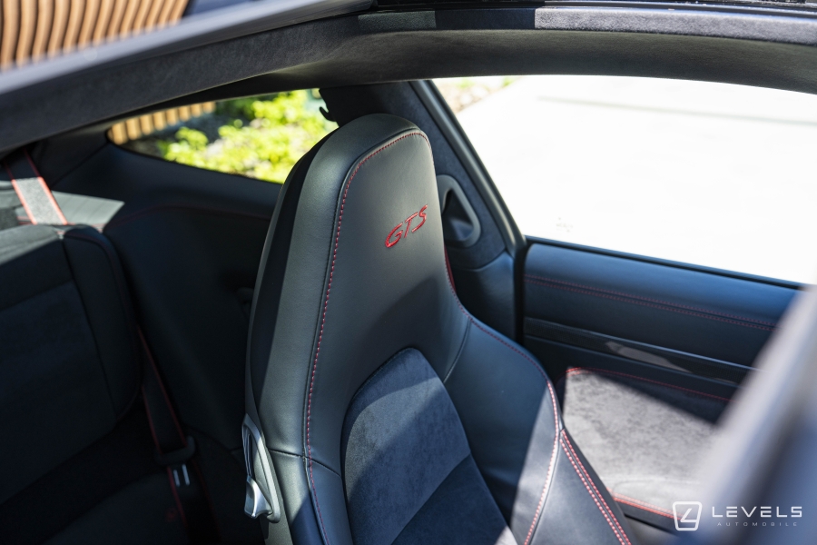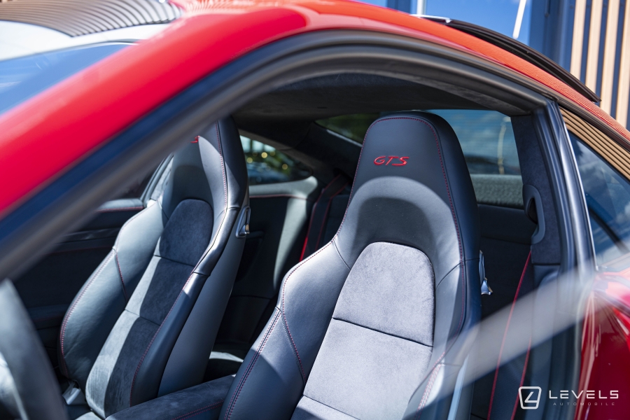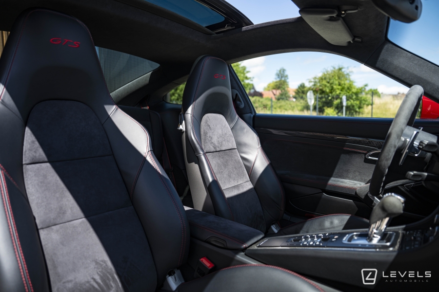 088 - Pack intérieur gts (combiné d'instruments avec fond colore, habitacle avec couture contrasté rouge carmin ou argent rhodium, monogramme gts brodé sur les appuie-tête, signature porsche sur les tapis de sol, liserés sur ceinture de sécurité, console centrale carbone, enjoliveur façade de commande carbone, panneau de porte carbone) (3320€)